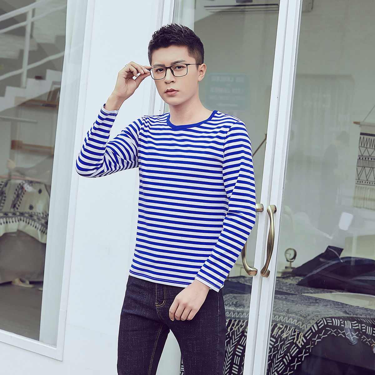 春秋棉质长袖海魂衫长袖T恤男蓝白条纹男女情侣海军衫打底衫潮帅