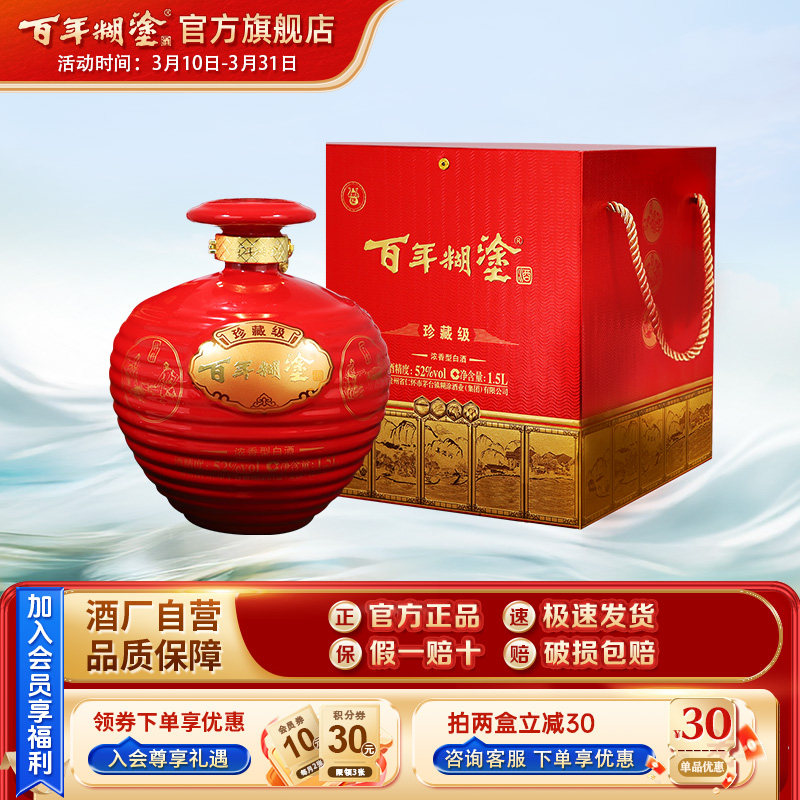 【3斤礼盒】百年糊涂珍藏级坛装52度贵州浓香型高粱白酒送礼包装
