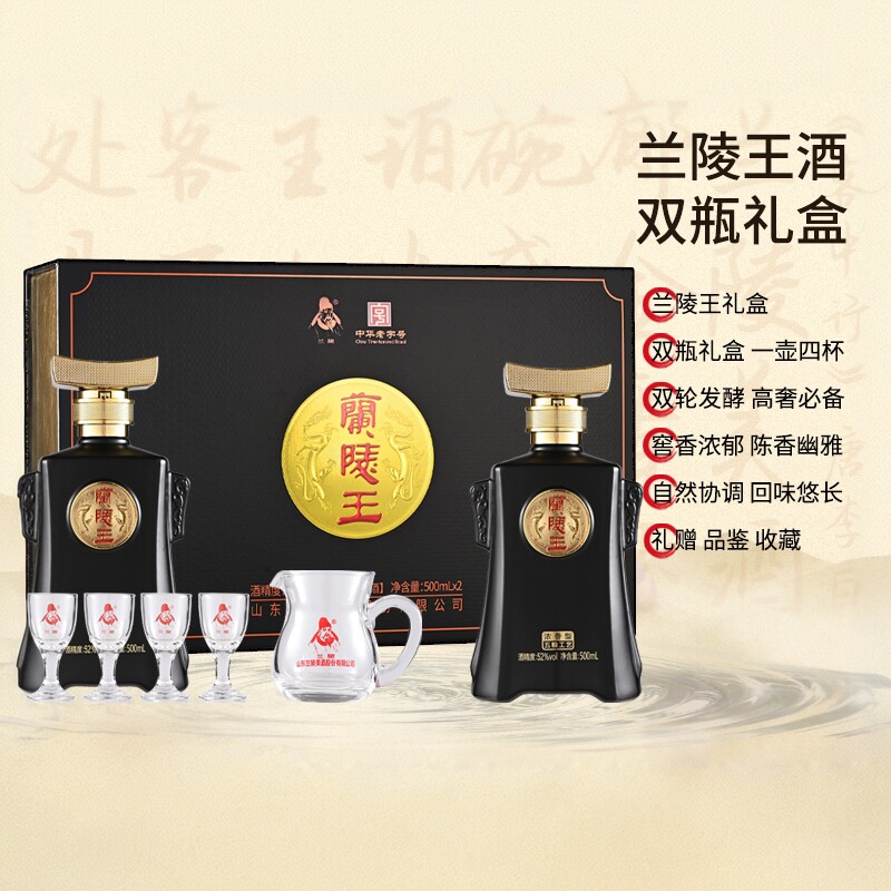 兰陵 52度兰陵王500mL*6浓香型纯粮食白酒整箱礼盒包装官方旗舰店