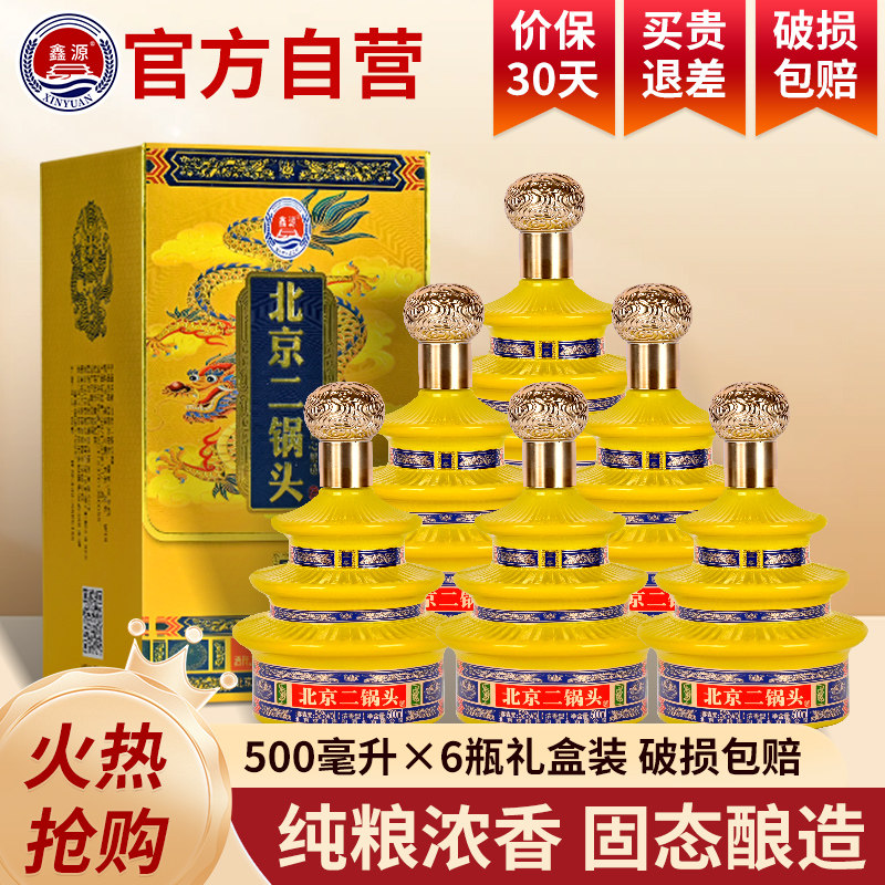 鑫源北京二锅头纯粮酒整箱礼盒装52度500ml*6瓶装浓香型精美包装