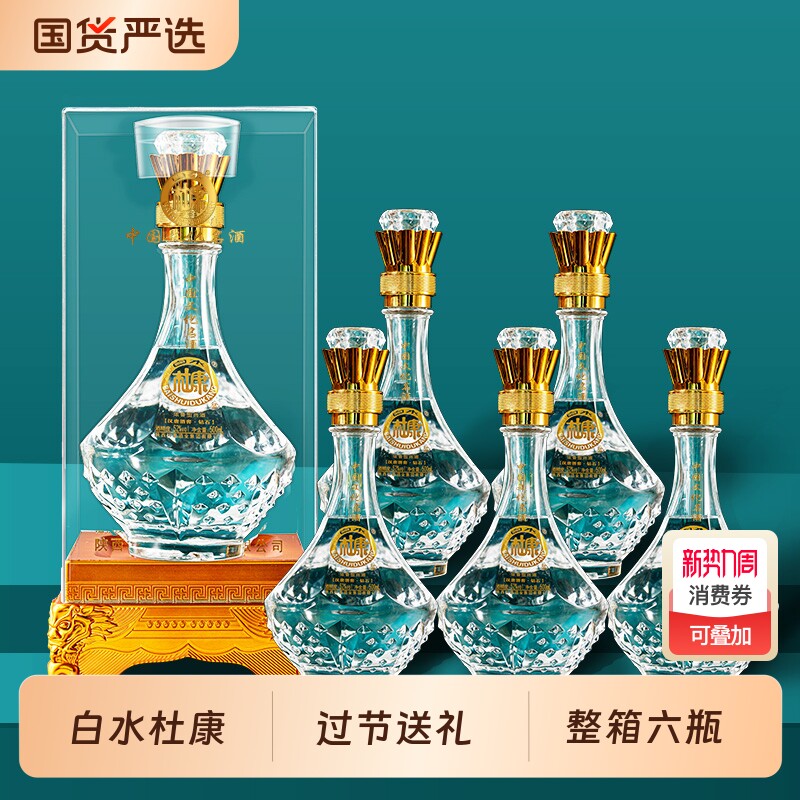 白水杜康52度浓香型高端白酒整箱六瓶透明礼盒包装过节送礼宴请酒