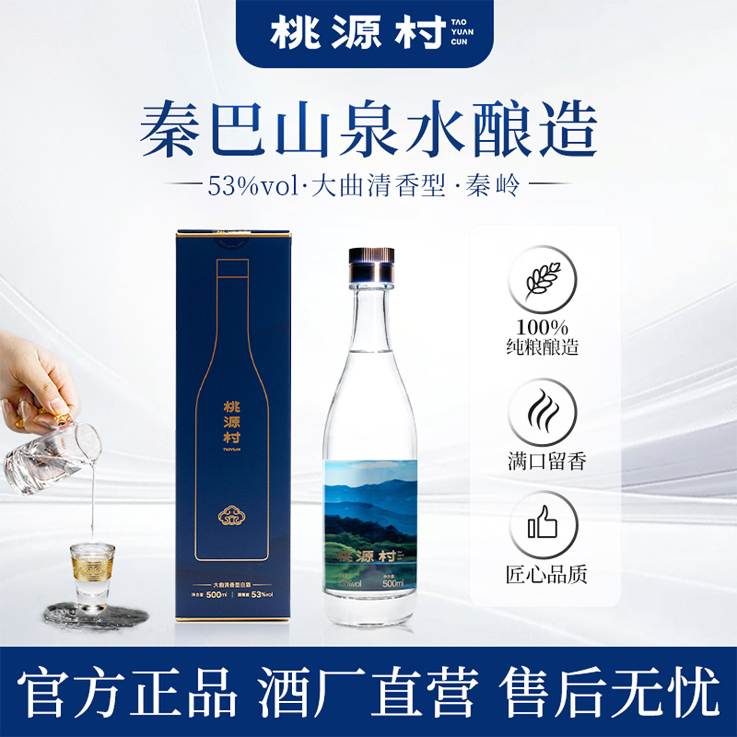 桃源村.秦岭53度500纯粮食礼盒包装清香型白酒正品官方旗舰店