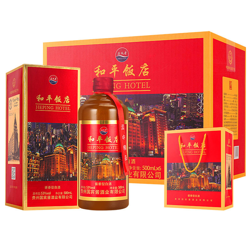 纪念酒和平饭店纯粮食酱香型白酒53度500ml*6高档礼盒包装送礼