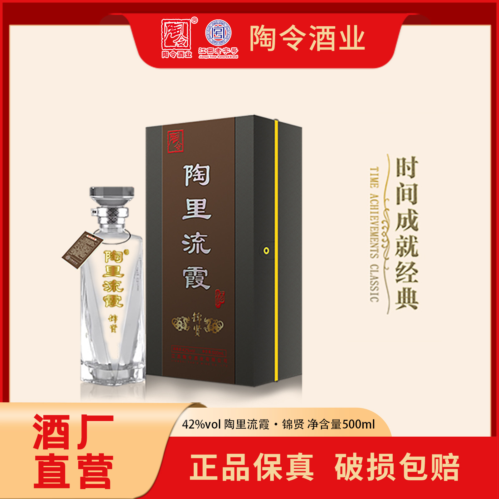 陶里流霞锦贤浓香型白酒42度500ml纯粮白酒礼盒包装过节送礼宴请