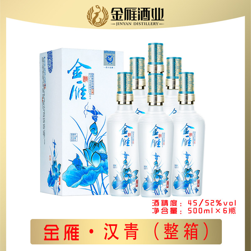 金雁汉青纯粮浓香型白酒礼盒包装四川小金花45度500ml*6瓶