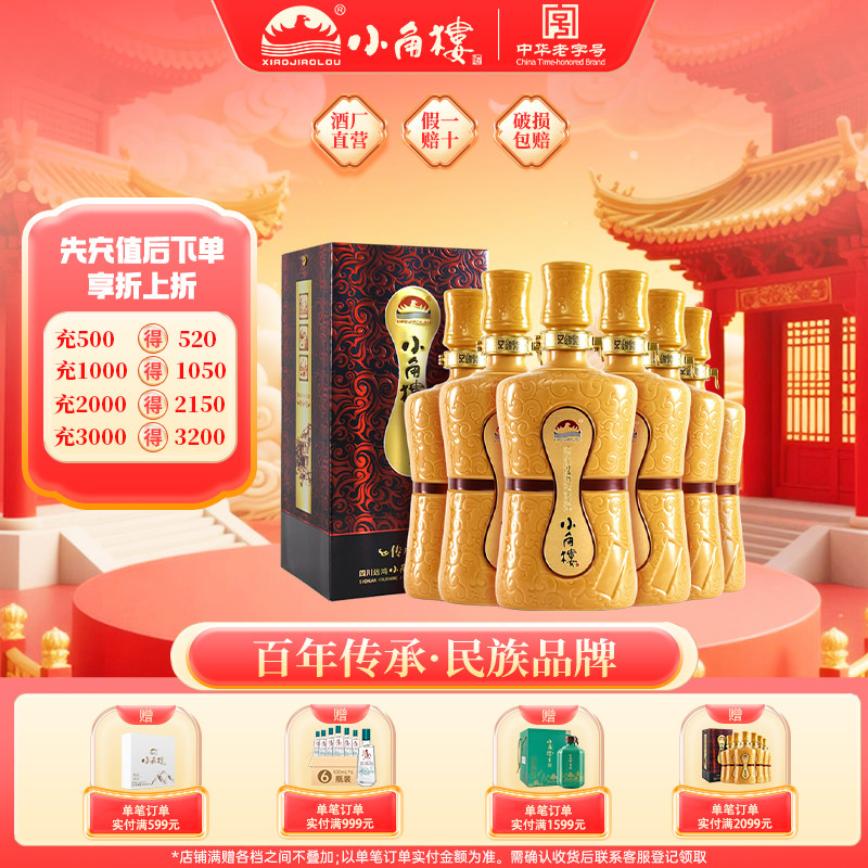 小角楼传承9号52度浓香型白酒500ml*6瓶装固态纯粮食酒送礼盒包装