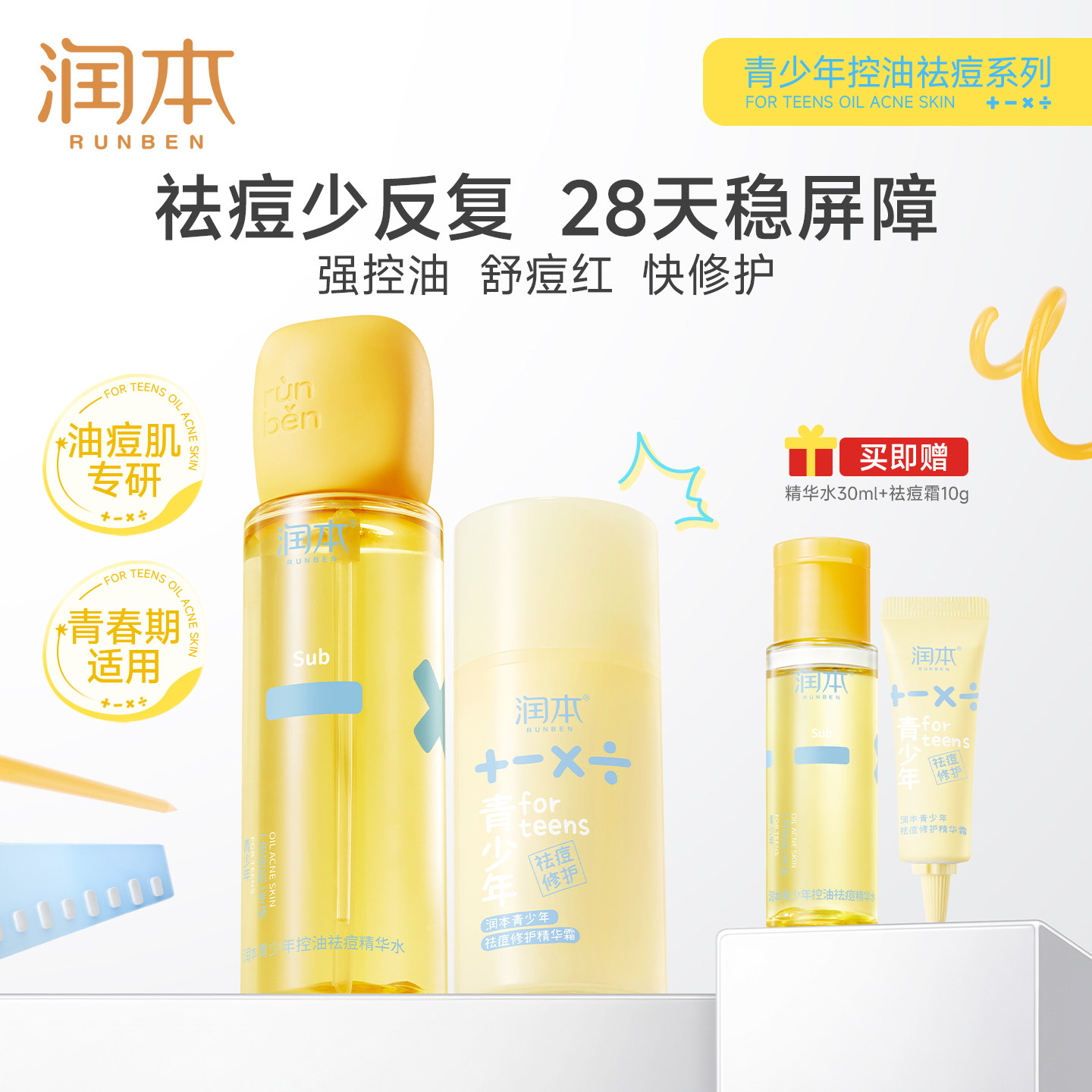 润本青少年控油祛痘爽肤水学生女淡化痘印男孩缩毛孔湿敷水乳套装