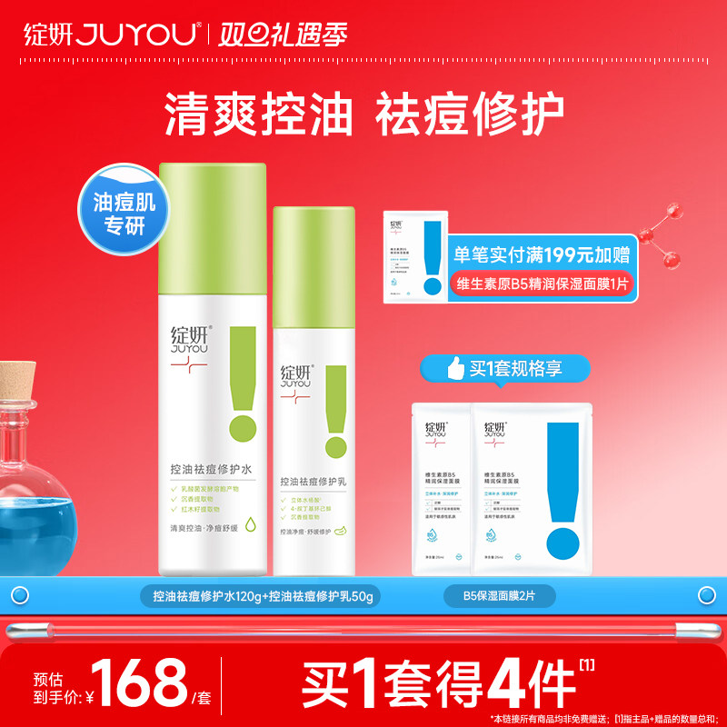 绽妍控油祛痘水乳男女油皮痘肌护肤品舒缓修护平衡水油爽肤水乳液