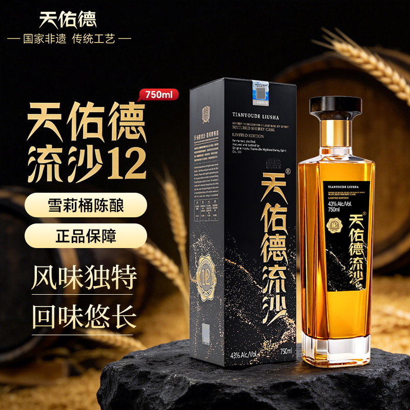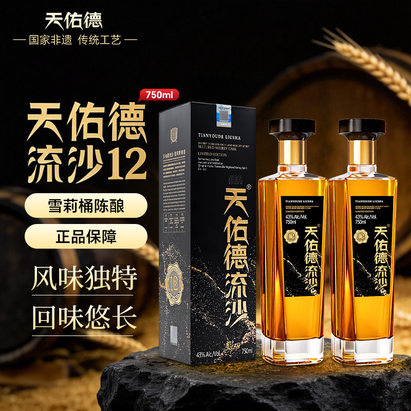天佑德流沙雪莉青稞酒43度750ml*2瓶礼盒装青海酒厂送礼