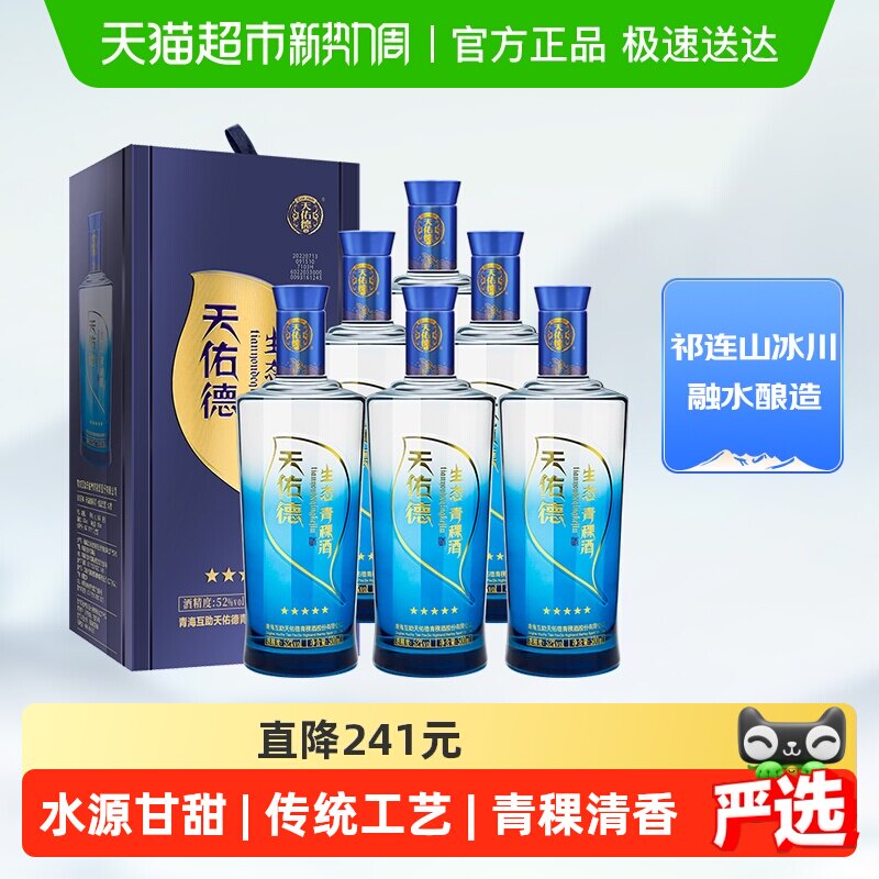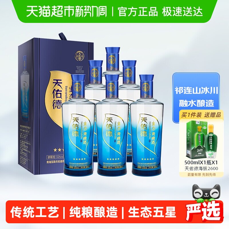青海天佑德青稞酒52度海拔3600 500ml*6瓶整箱白酒高度纯粮食酒水