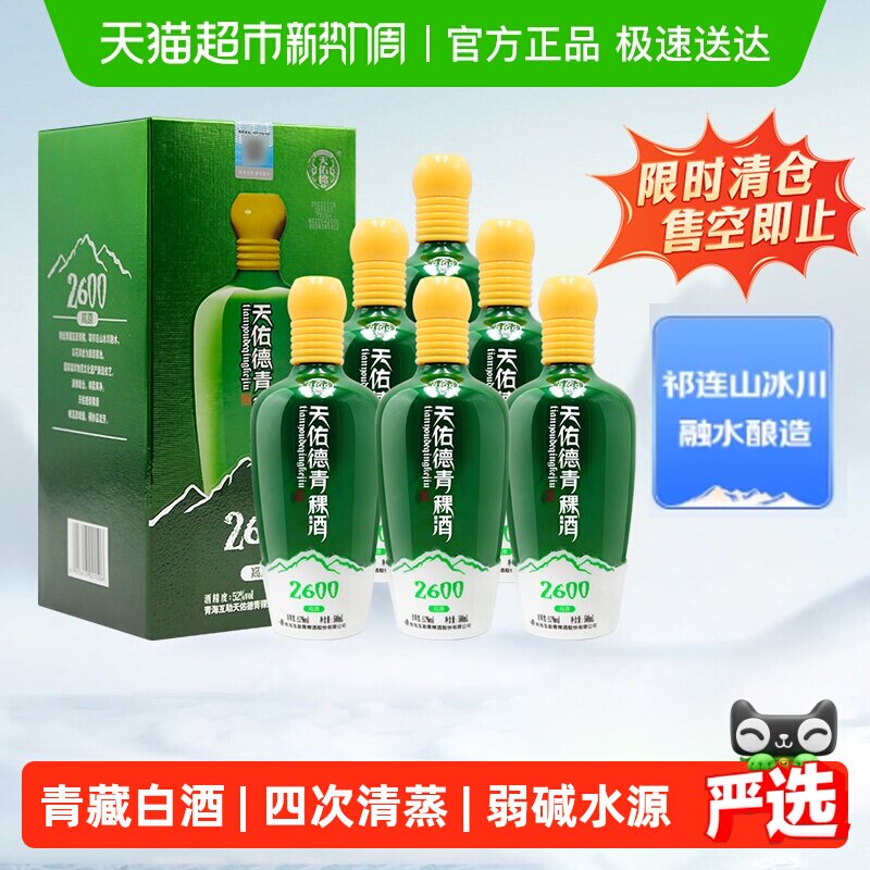 天佑德青稞酒52度海拔3000清香型白酒500ml*6整箱青海特产