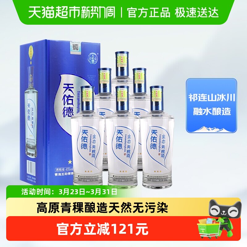 天佑德青稞酒45度生态三星500ml*6瓶整箱清香型白酒口粮酒送礼