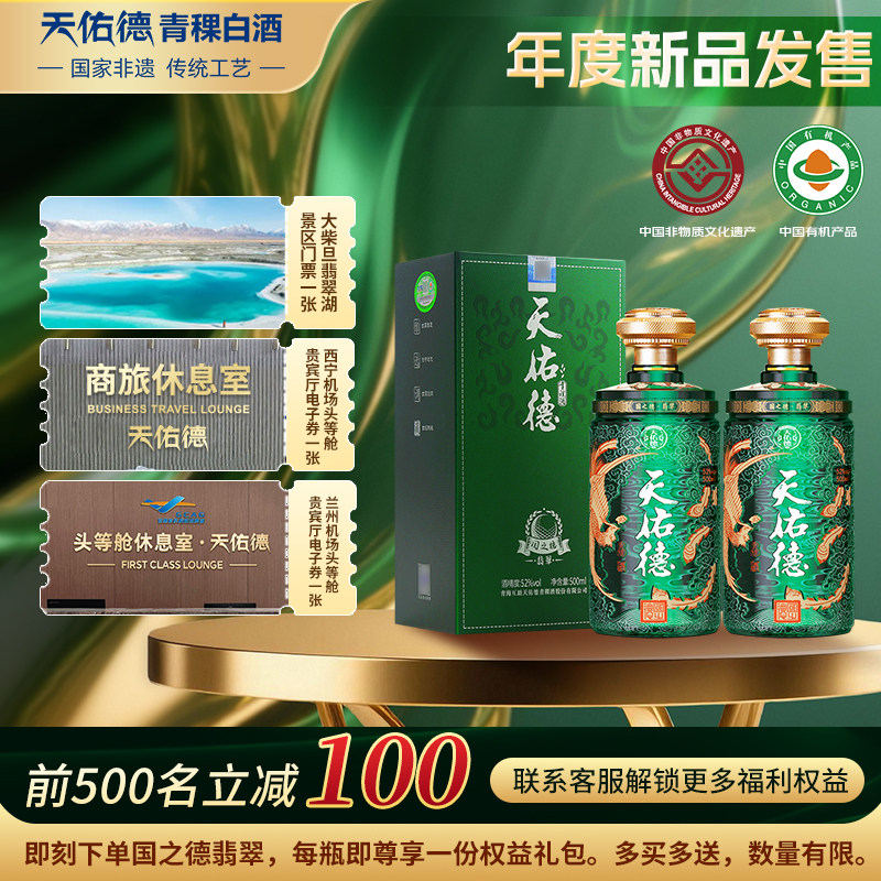 【有机白酒】天佑德青稞酒国之德翡翠52度500ml*2瓶高端白酒送礼