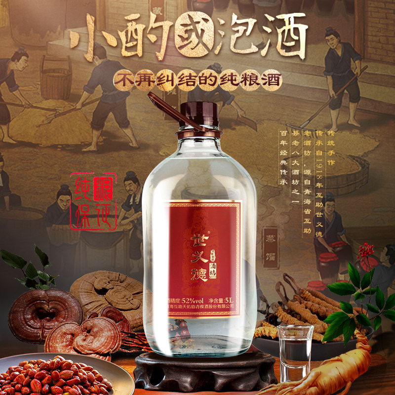 世义德青稞酒酒坊52度5L约10斤清香纯粮白酒玻璃桶装散酒礼盒泡酒