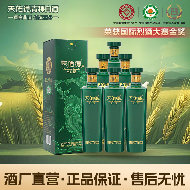 天佑德青稞酒52度出口型和平版750ml*6瓶白酒整箱清香型高度白酒