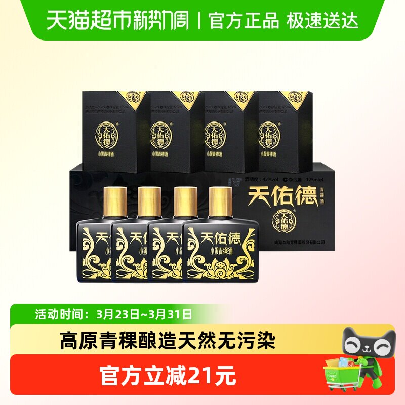 【小瓶白酒】天佑德青稞酒 42度小黑125ml*4青海白酒聚会过节好礼