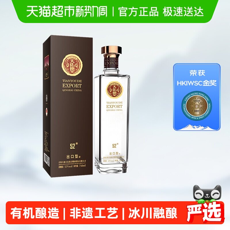天佑德青稞酒52度清香型白酒出口品质有机标志爽净淡雅节庆送礼