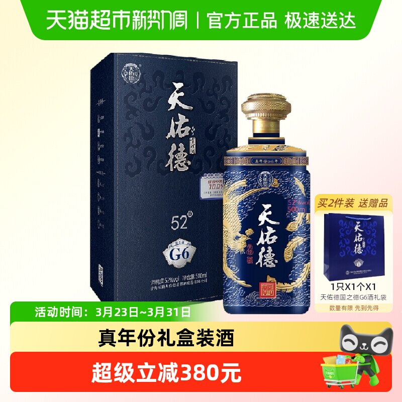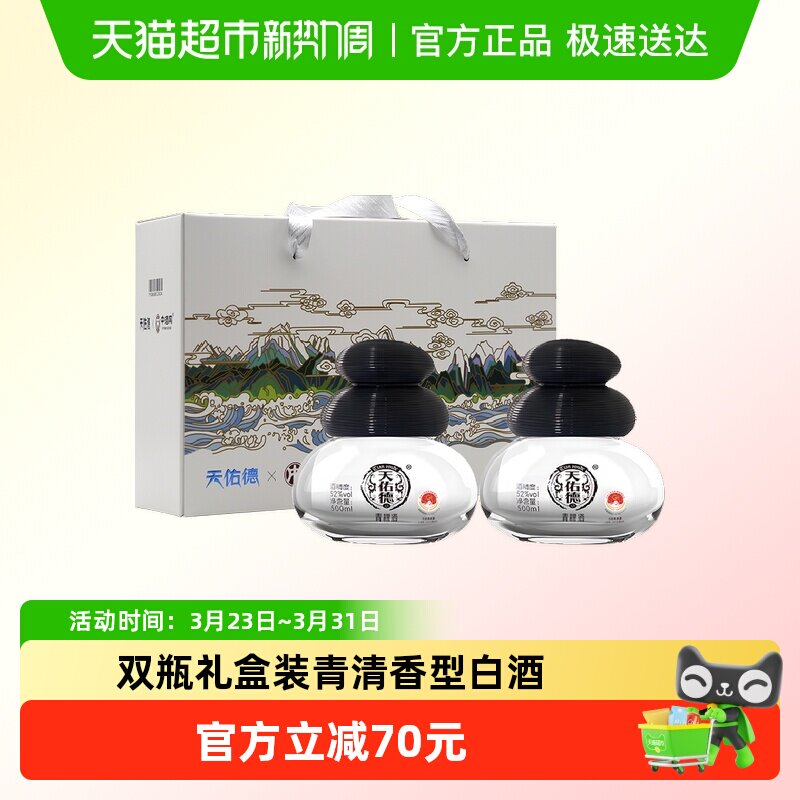 【热卖推荐】天佑德52度生态五星清香型白酒500ml*2双支送礼