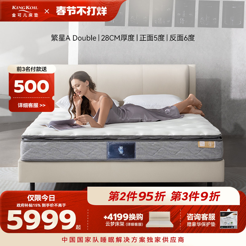 金可儿乳胶弹簧床垫 独袋三区弹簧酒店卧室床垫子 繁星A Double