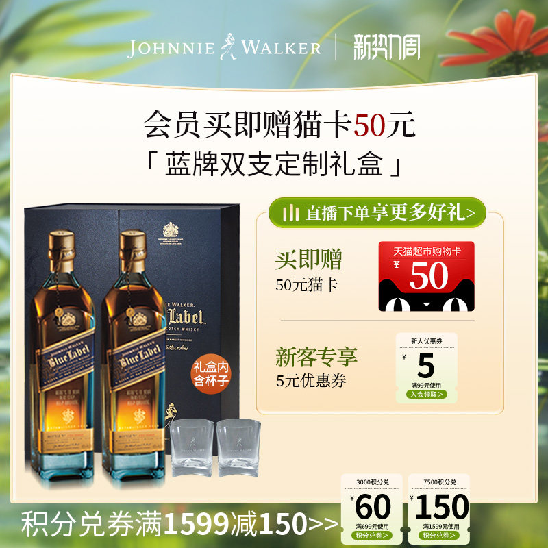 【官方旗舰店】尊尼获加蓝牌蓝方调配型威士忌双支礼盒500ml*2