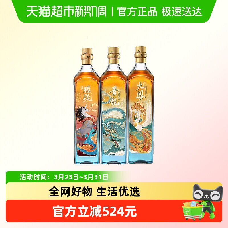 【节日礼盒】尊尼获加蓝牌威士忌山海经系列凤仪龙骏500ml*3洋酒