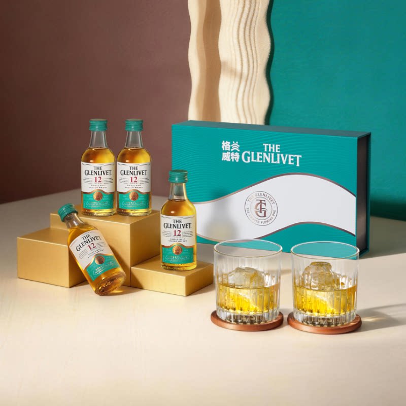 【官旗正品】glenlivet格兰威特12年50ml4支装礼盒单一麦芽威士忌