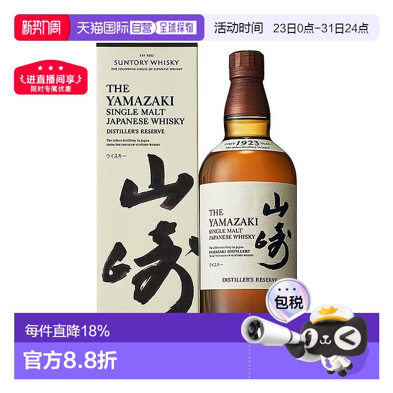 日本直邮三得利山崎威士忌礼盒款700ml单一麦芽威士忌酒进口洋酒