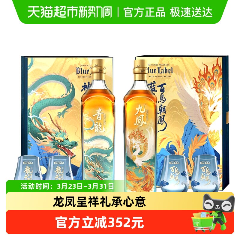 尊尼获加蓝牌山海经系列马年限定龙凤特别版礼盒套组威士忌500ml
