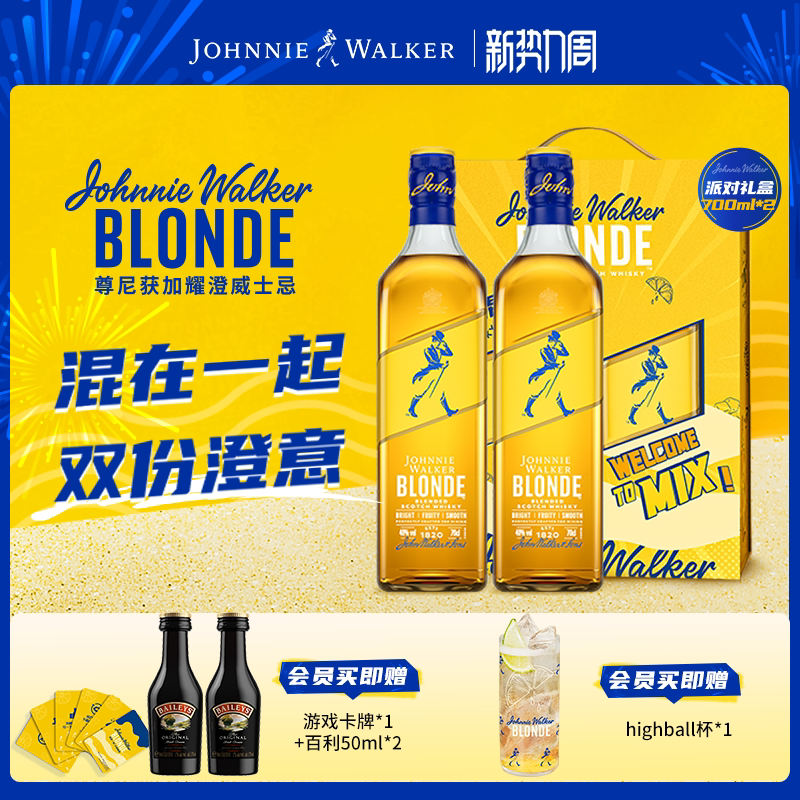 【官方旗舰店】尊尼获加耀澄Blonde柠檬嗨棒调酒威士忌洋酒礼盒装