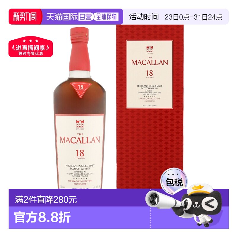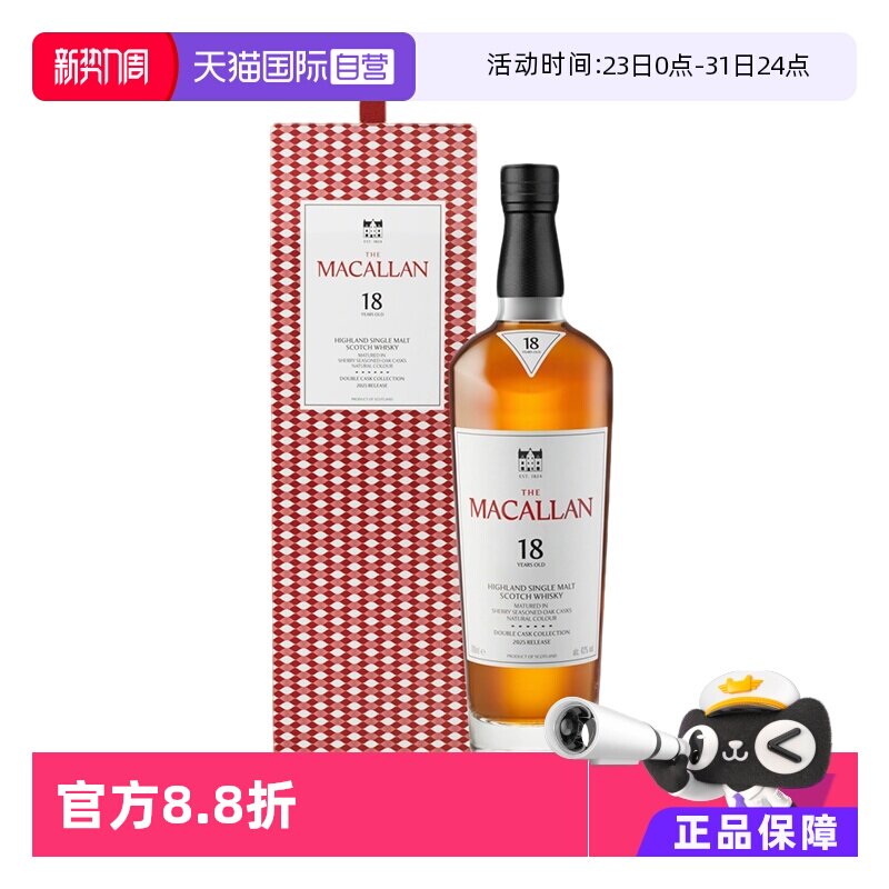 【自营】麦卡伦(MACALLAN)18年双桶 单一麦芽威士忌700ml礼盒装