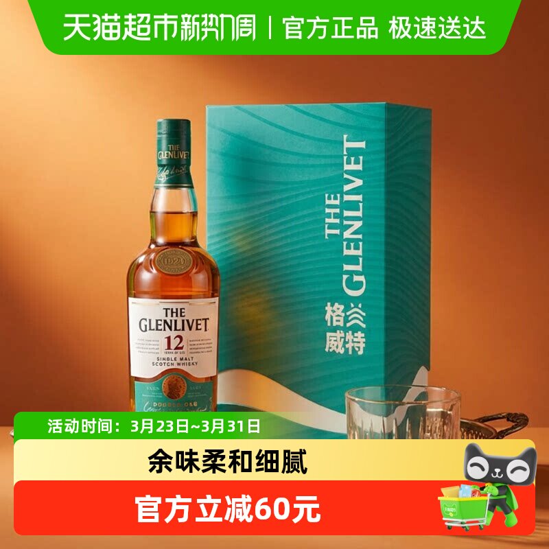 The Glenlivet格兰威特12年陈酿700ml单一麦芽威士忌礼盒款洋酒