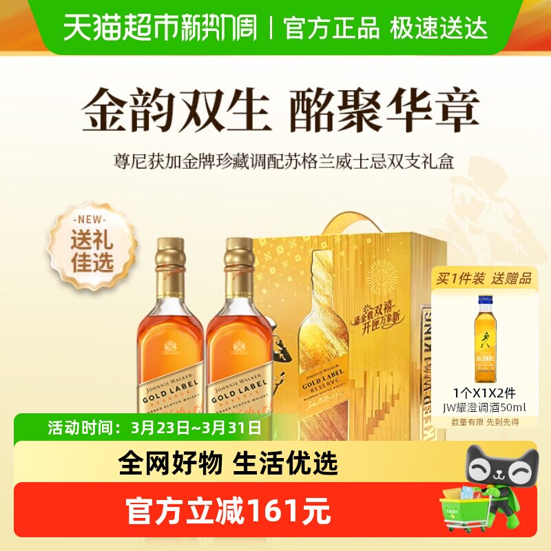 【节日礼盒】尊尼获加金牌苏格兰威士忌珍藏750ml*2双支送礼洋酒