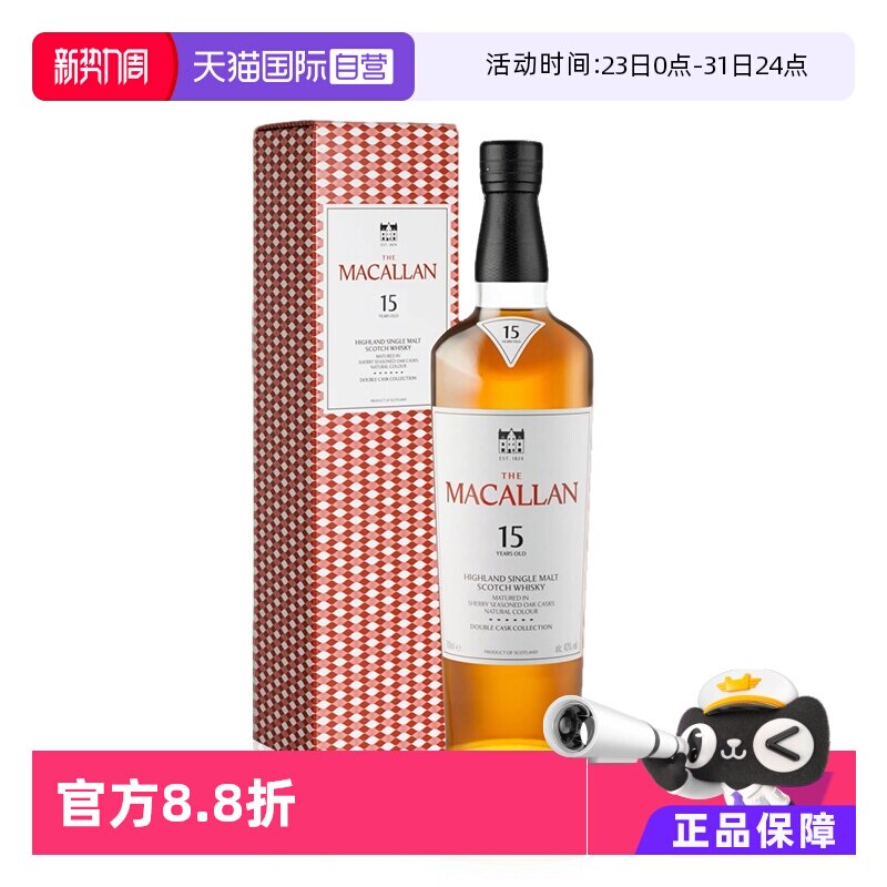 【自营】麦卡伦(MACALLAN15年双桶 单一麦芽威士忌700ml 礼盒装