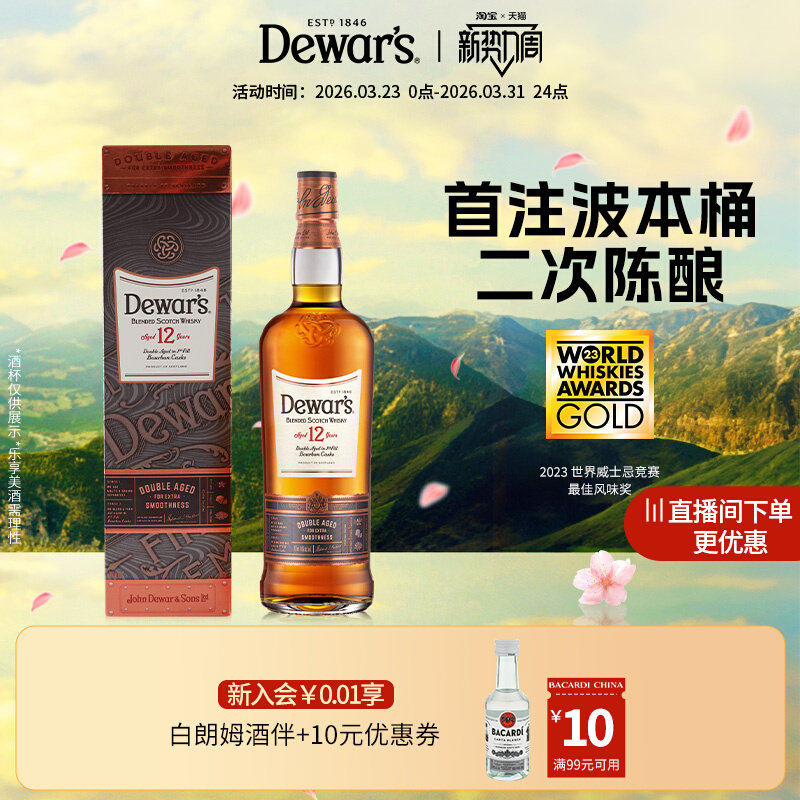 【国际大牌】Dewar's帝王威士忌洋酒12年威士忌700ml调酒洋酒礼盒