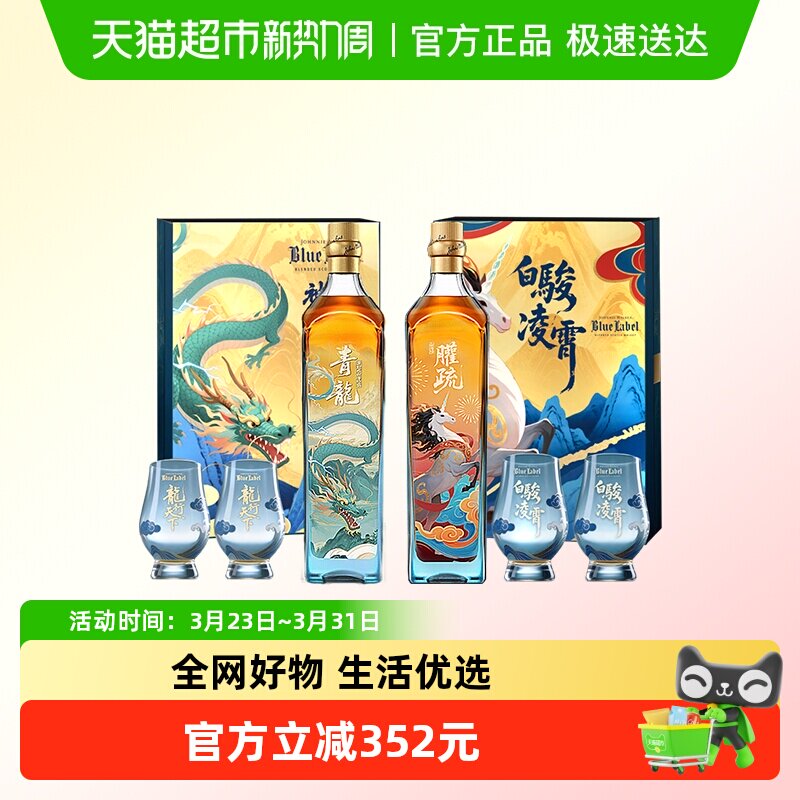 【节日礼盒】尊尼获加山海经系列蓝牌威士忌龙驰骏迈礼盒500ml*2