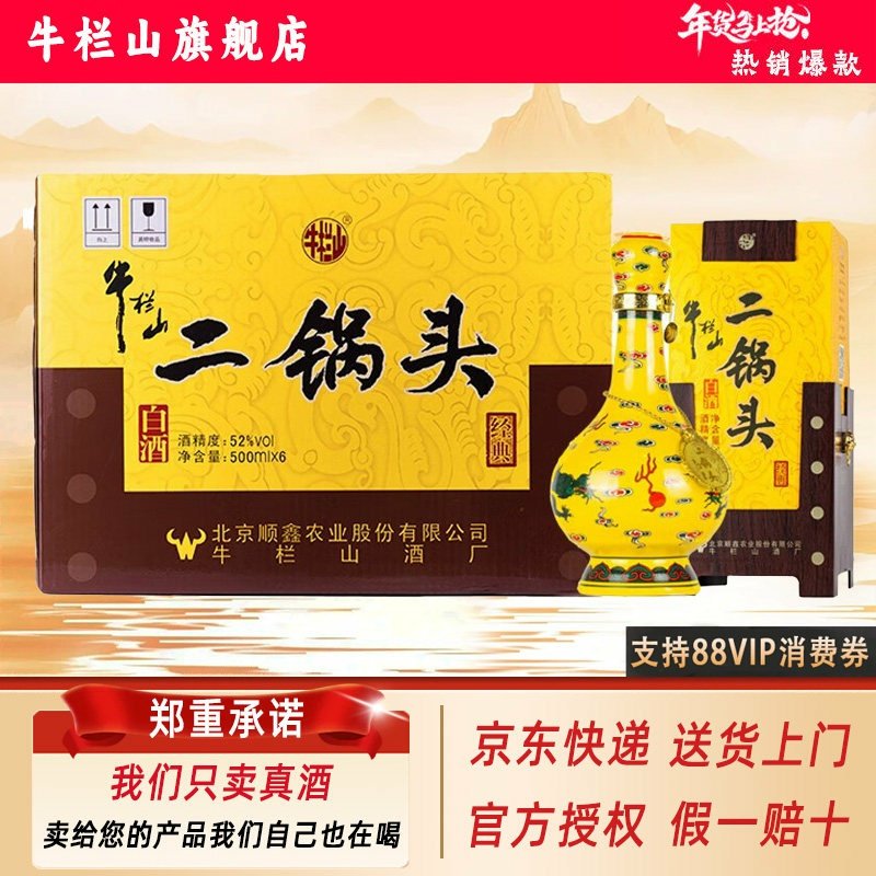 牛栏山二锅头白酒 经典黄龙52/45度 瓷瓶 清香型500ml*6瓶整箱装