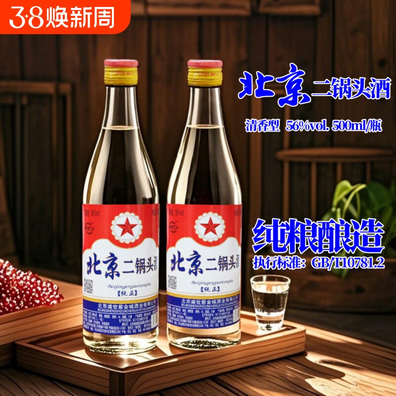 北京二锅头酒高度白酒56度500ml 清香型二锅头白酒整箱纯粮食酒