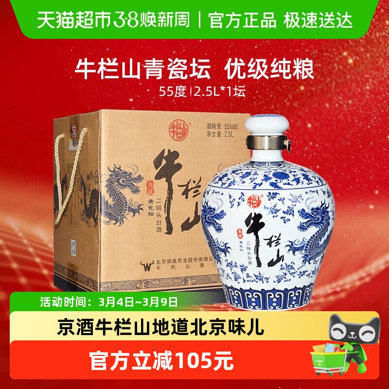 牛栏山二锅头白酒55度典藏青瓷坛白酒2.5l*1坛清香型纯粮白酒