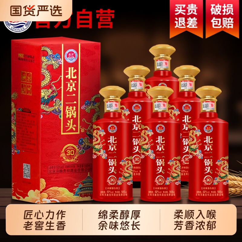 北京二锅头白酒整箱纯粮食酒礼盒装52度500ML*6瓶浓香型酒业纪念
