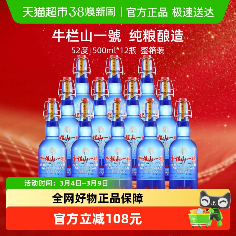 牛栏山一號蓝瓶52度特酿二锅头白酒 500mL*12瓶 清香型纯粮固态