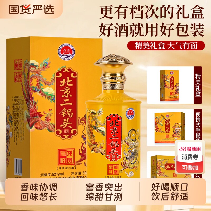 鑫源北京二锅头白酒整箱浓香型52度粮食酒水500ml高度酒坛装特价
