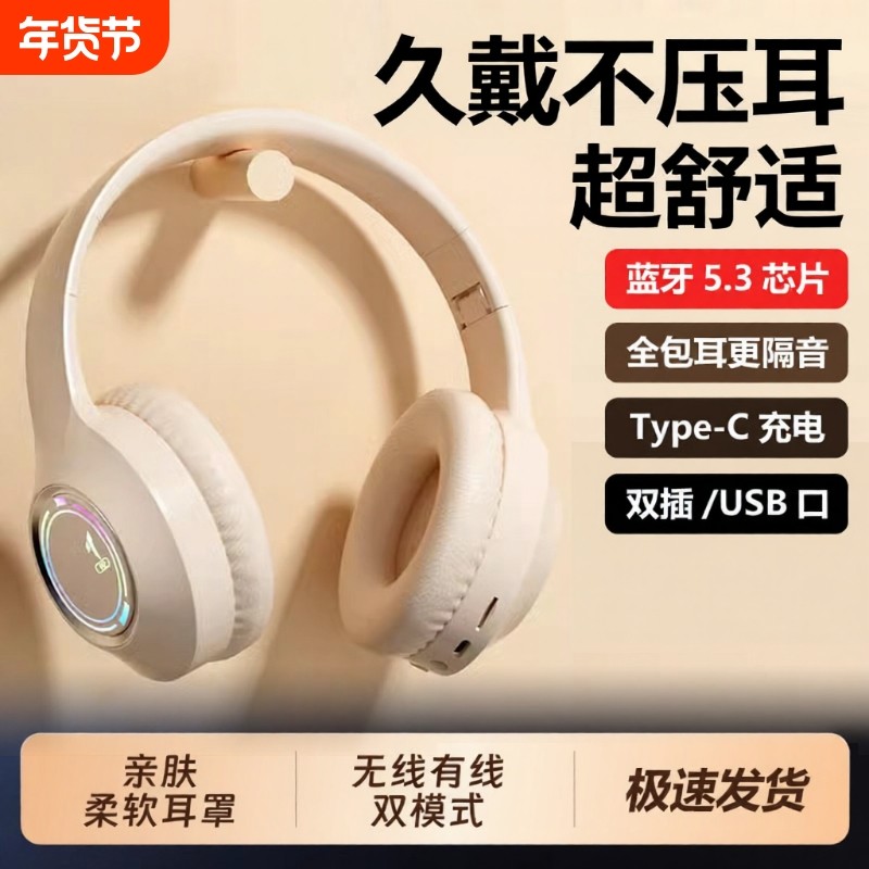 2025新款无线头戴式蓝牙耳机重低音降噪听歌跑步运动男生电脑耳麦