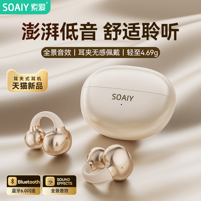 索爱GK55耳夹式蓝牙耳机无线重低音2025新款不入耳开放气传导运动