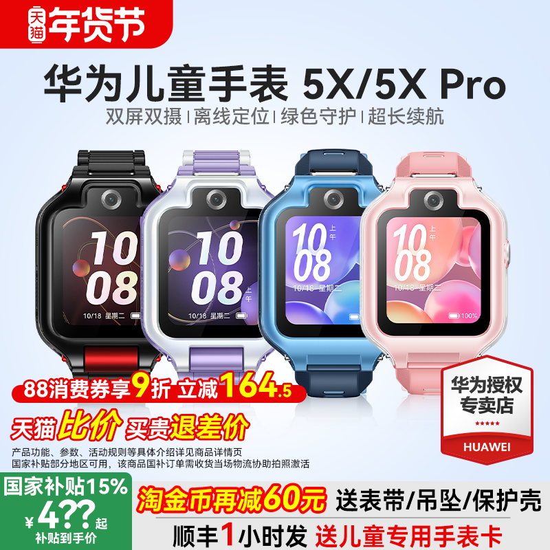 【政府补贴15%】华为儿童电话手表5X Pro双屏双摄离线定位翻转4g全网通5x智能高清视频通话男女孩防水官方旗
