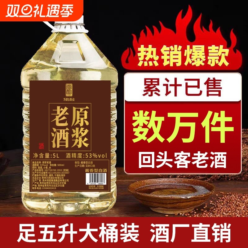贵州酱香型53度白酒桶装纯粮食坤沙老酒10斤散装酒水批发特价清仓