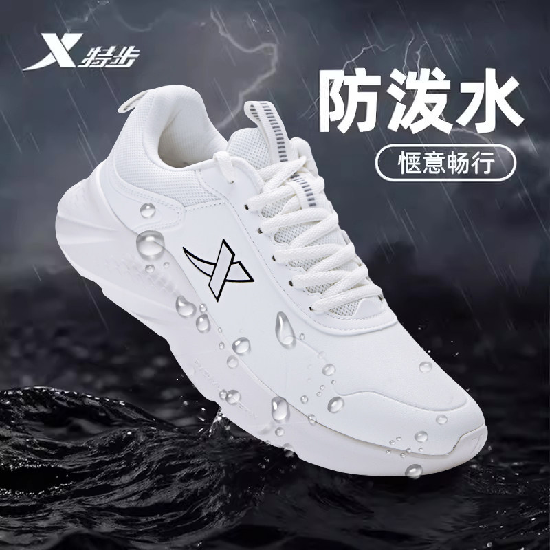 特步运动鞋男官方旗舰店正品2025秋季新款皮面防水学生白色跑步鞋