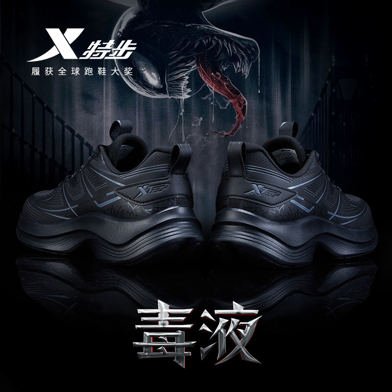 特步运动鞋男官方旗舰店正品新款2025秋季男鞋黑色跑步鞋软底减震