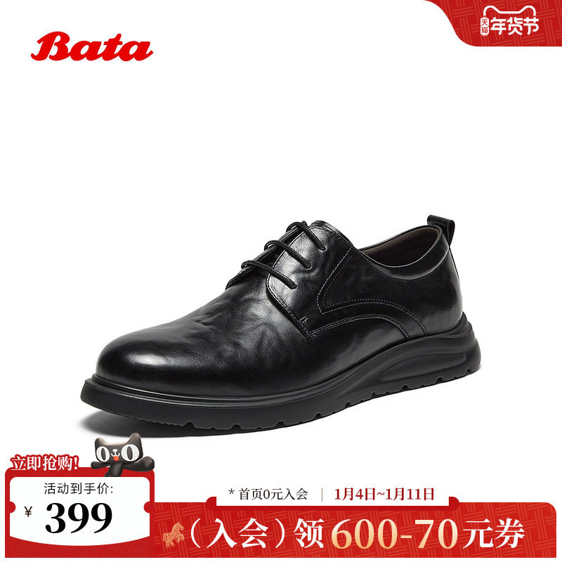 Bata商务正装鞋男2025秋季商场新款英伦牛皮纹理德比皮鞋64707CM5