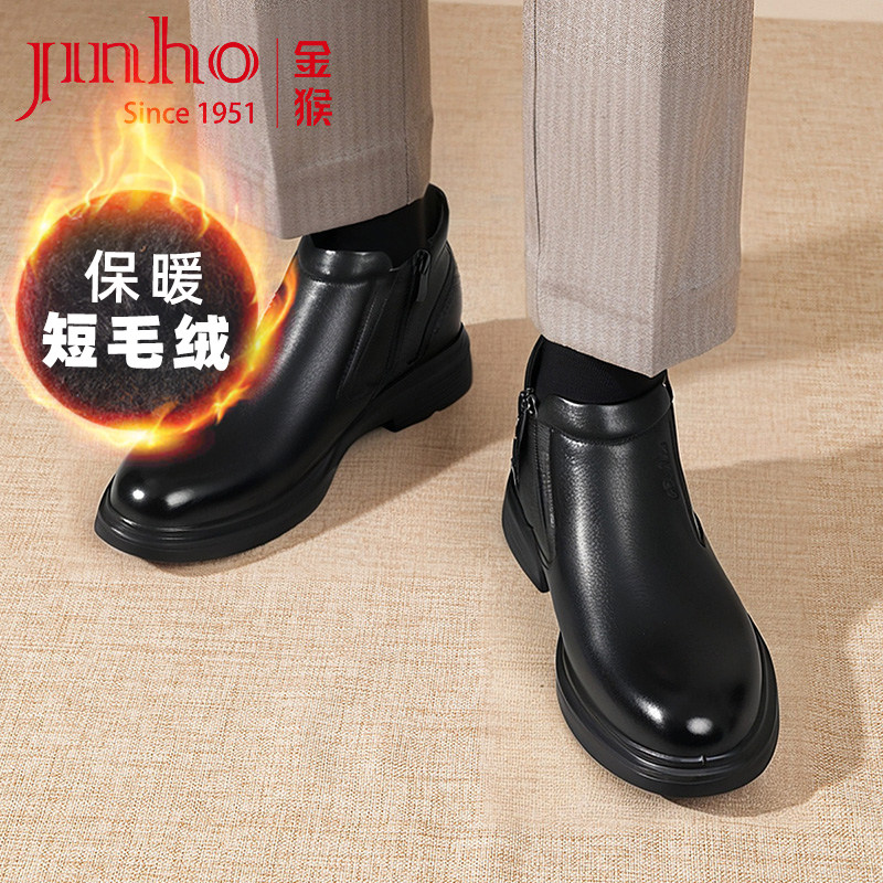 金猴棉鞋男冬季加绒加厚保暖2025新款厚底男棉鞋圆头商务正装鞋男