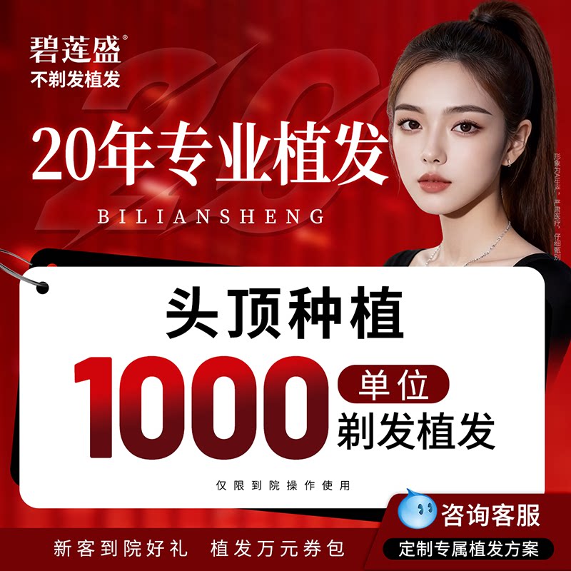 雍禾植发 发际线M角毛发种植剃发植发1000单位一口价【主任团队】